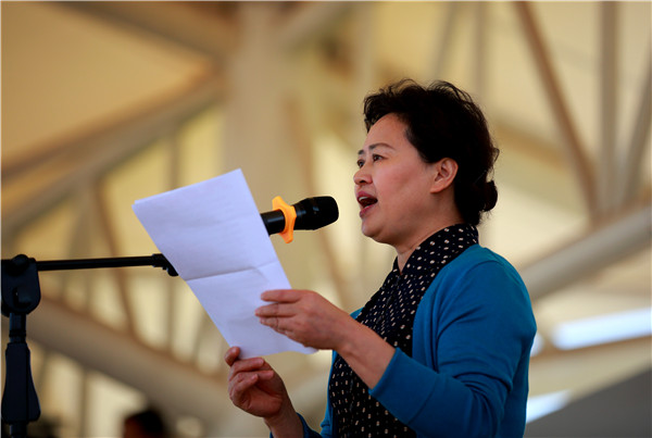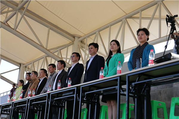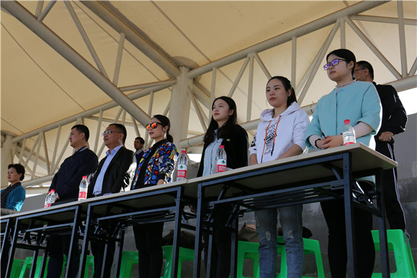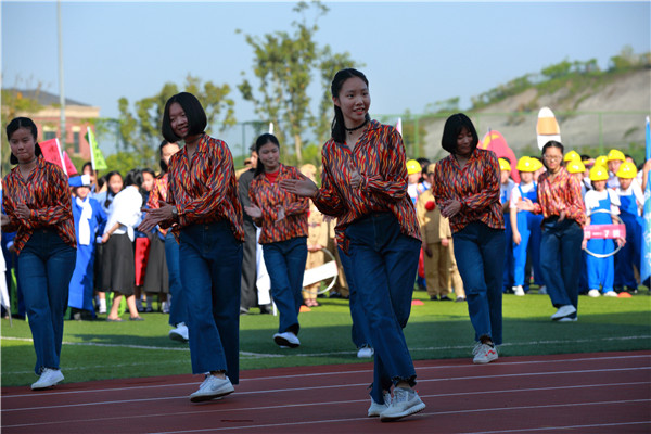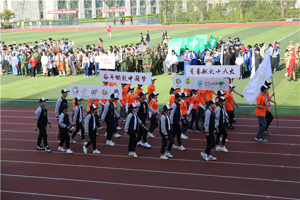 全部方阵进场完毕后,校长助理唐晓娥致开幕辞,校长周迎春宣布运动会正式开幕,全场沸腾。