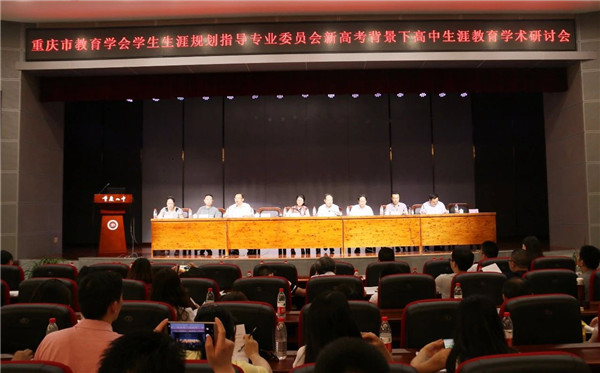 为全面落实立德树人根本任务,积极应对新高考改革各种挑战,2018年5月17日下午,重庆市教育学会学生生涯规划指导专业委员会(以下简称“专委会”)在我校召开新高考背景下高中生涯教育学术研讨会,我校副校长卿知人、副校长付英、教科室副主任陈航、各年级组长及部分教师参加了会议。我校副校长卿知人在研讨会上致辞,强调了立德树人和生涯发展都需要精心规划设计,介绍了我校近年来学生生涯发展的工作及学校成绩,并对此次研讨会做了展望。
