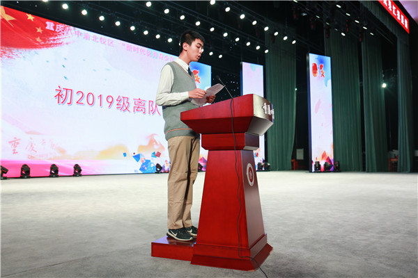 活动伊始,重庆八中副校长卿知人代表学校宣读2017—2018 学年度“新时代优秀青少年”的表彰决定,紧接着渝北校区副校长周敦鸾寄语全校学生新时代的八中青少年,要勇做新时代的弄潮儿。