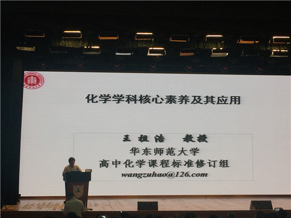 第一部分新课标报告环节。分别由国家初高中化学课程标准研制组负责人王祖浩教授就化学核心素养的研制及应用进行解读、国家初高中化学课程标准研制组核心成员郑长龙教授进行了、“素养为本”的化学课堂设计与实施的专题报告、国家初高中课程标准修订组核心成员魏锐副教授做高中化学课程结构与内容修订的解读报告。