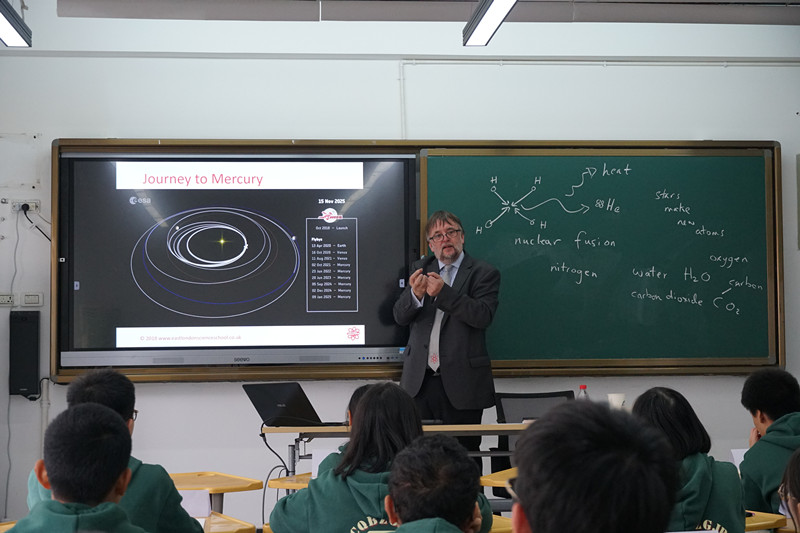 活动最后,perks校长特地赶往重庆八中阳光校区,亲自为国际部的同学们上了一堂生动的天文学课。课上,同学们积极地与perks校长互动,国际部同学的自信与高素质给perks校长留下了深刻的印象。