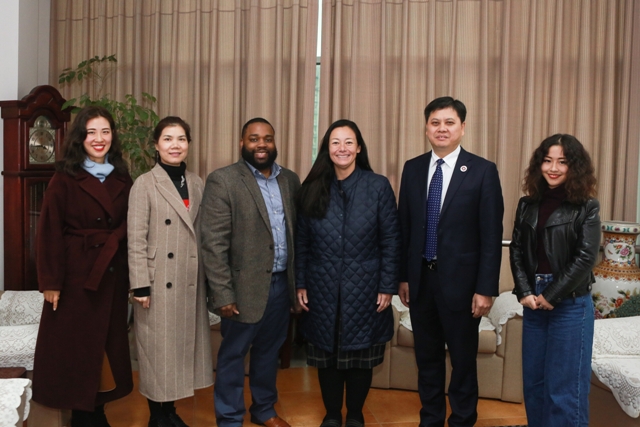 随后,美方代表驱车前往沙坪坝校区与周校长和付校长亲切会谈,并签订合作协议。