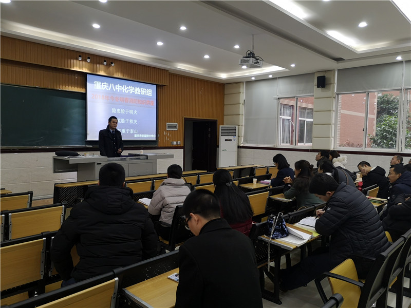 2018年12月10日上午化学教研组成功开展了沙坪坝化学教师消防安全讲座,本次讲座不仅增强了老师们的消防安全意识,还树立了防火于未然的责任意识,让老师们有效掌握了在教学工作中、家庭生活中预防火灾的措施,以及发生火灾时正确的逃生方法。