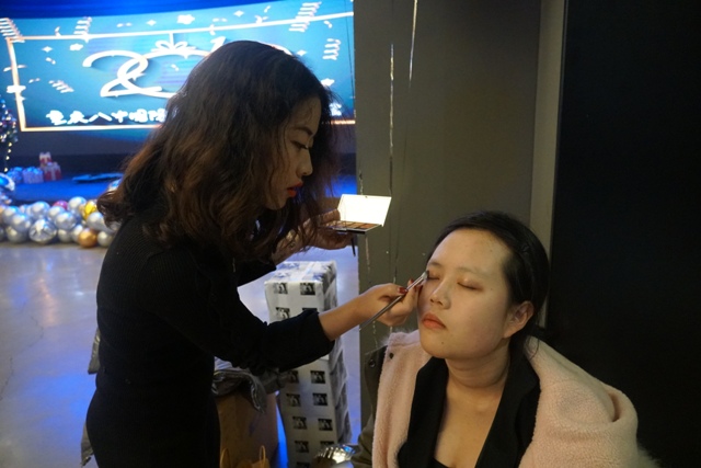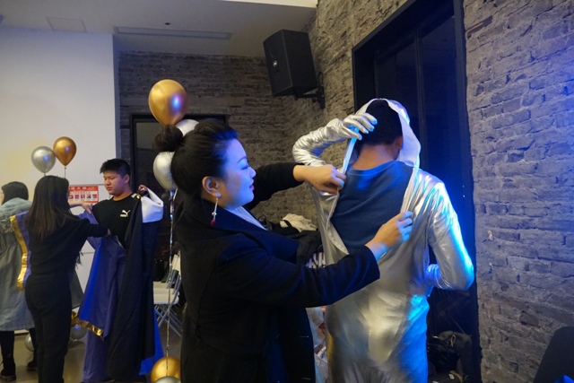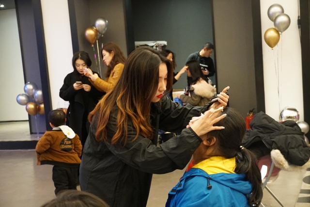 国际部老师们认真工作的花絮——负责学生妆容、道具服饰并主持会场秩序堪称全能