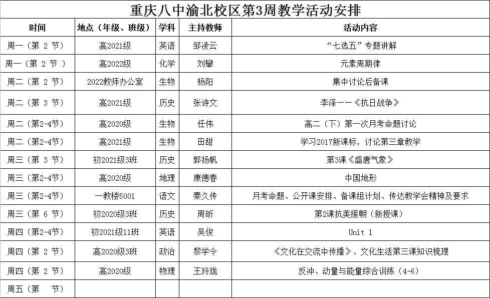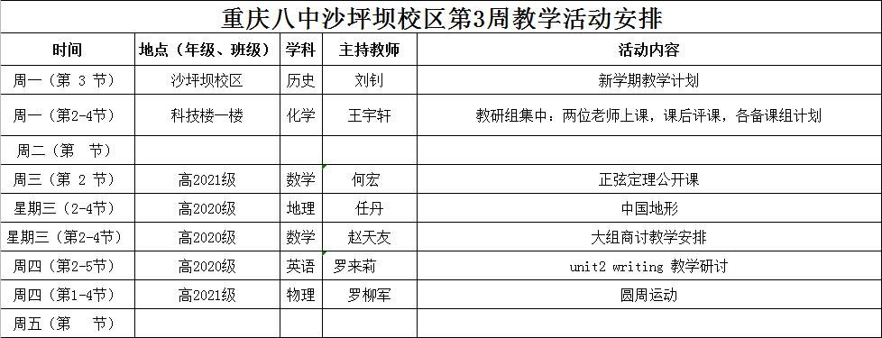 2018-2019学年度(下)第3周备课安排