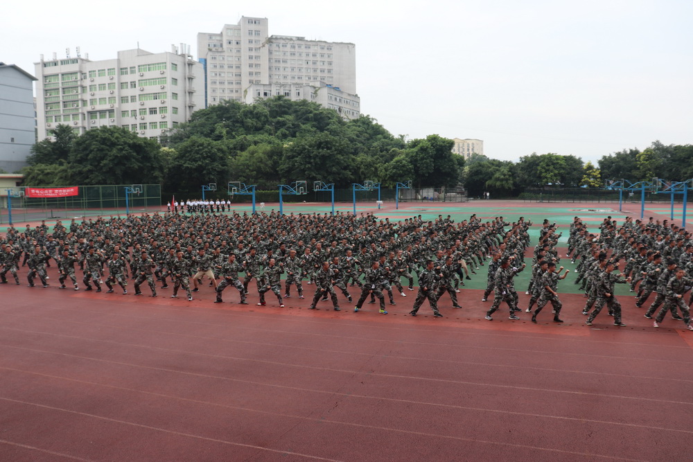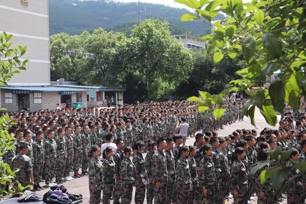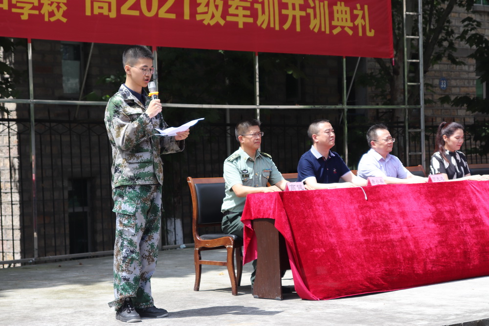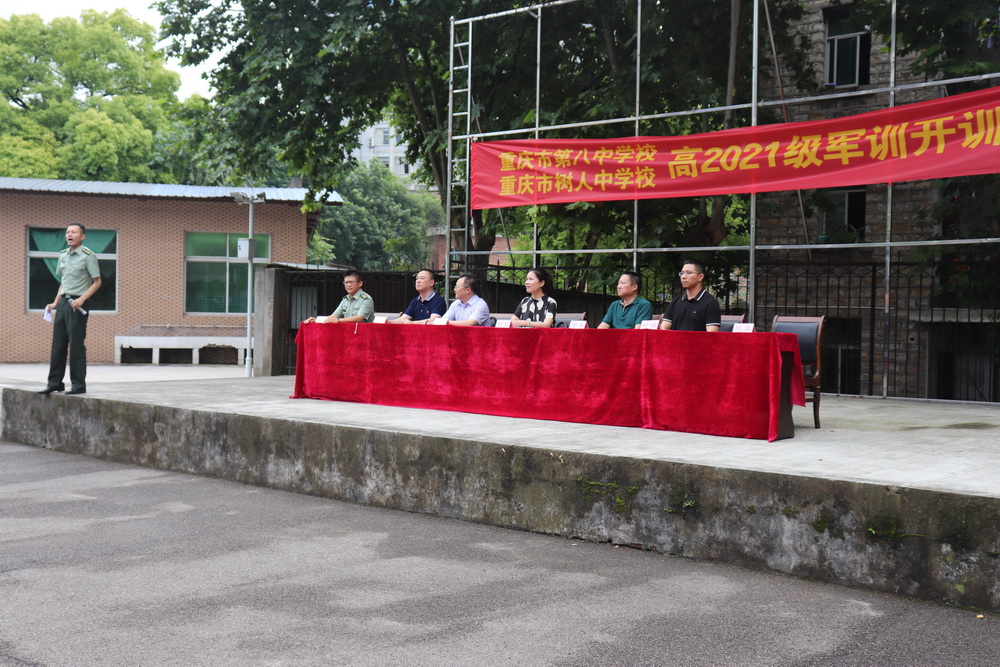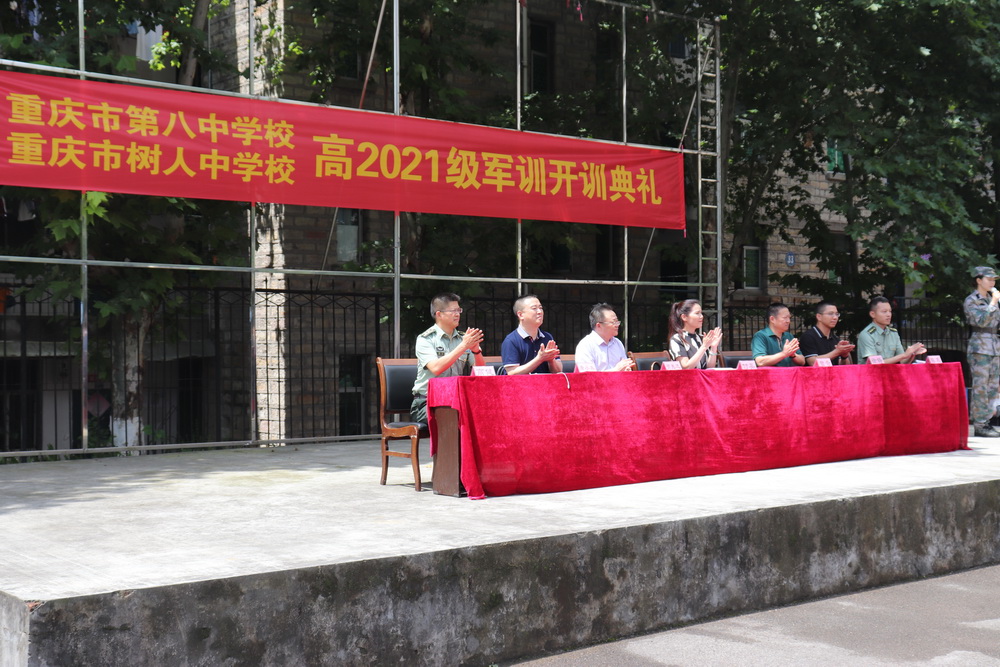 到了陌生的环境,学子们按照教官要求,立刻回寝室换好军训迷彩服,整队集合,参加开训典礼。重庆八中副校长付英、重庆八中树人中学校长曾奇、重庆八中学生处主任贺先进、重庆八中高2021级年级主任唐小兵、重庆八中树人中学高2021级年级主任徐铸、军训团团长高健,总教官陈蹇参加本次开训仪式。
