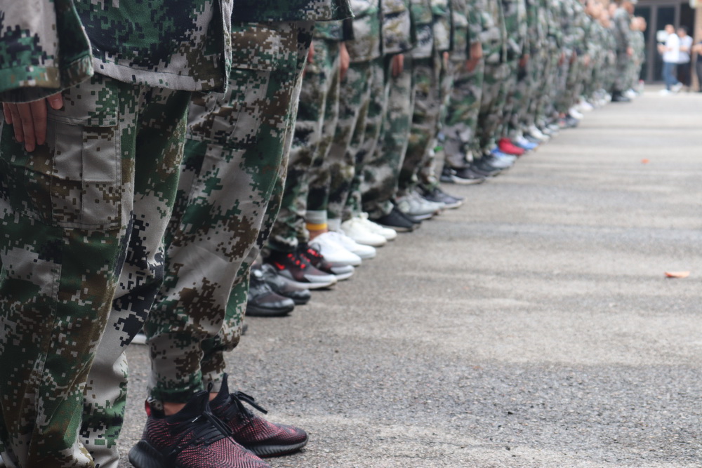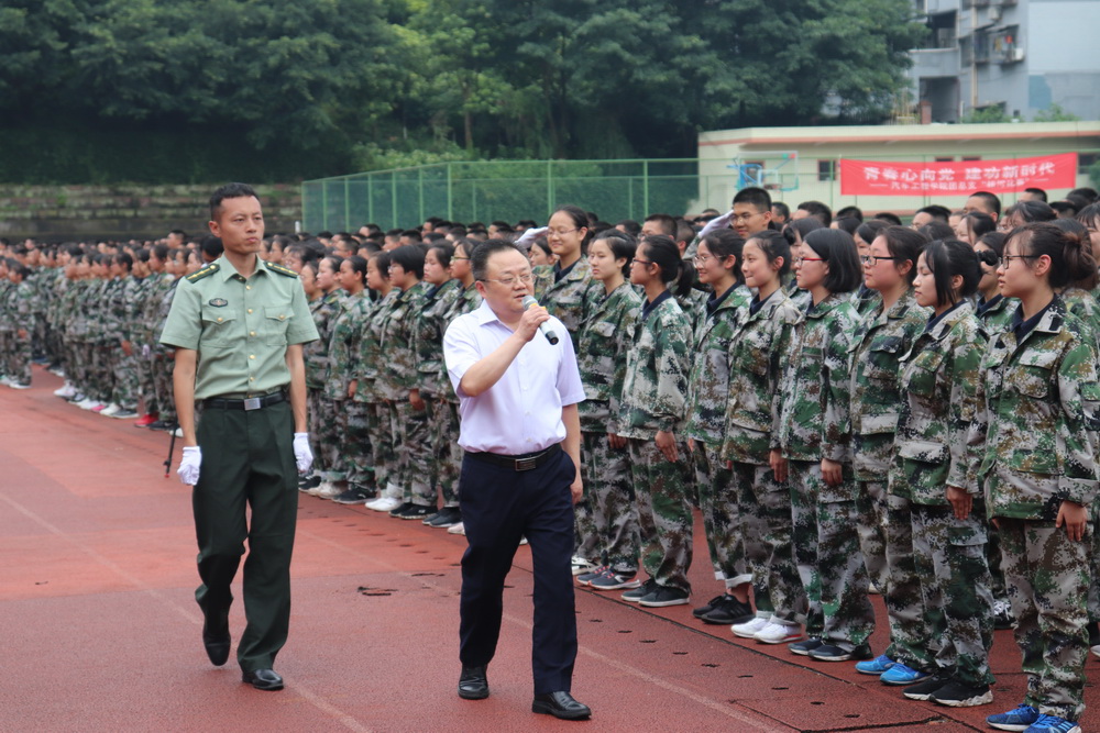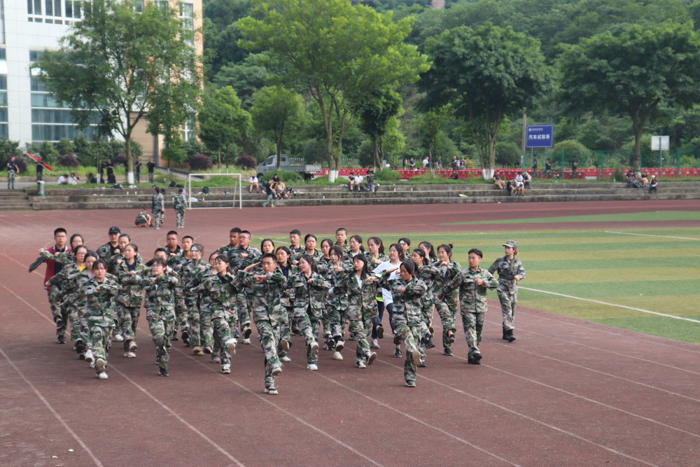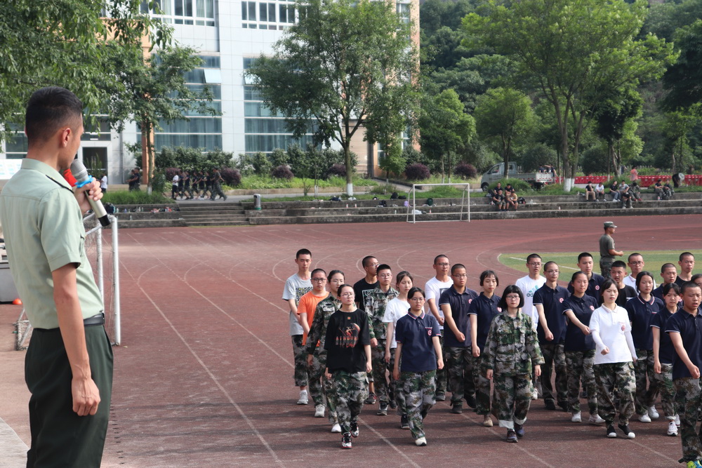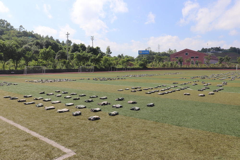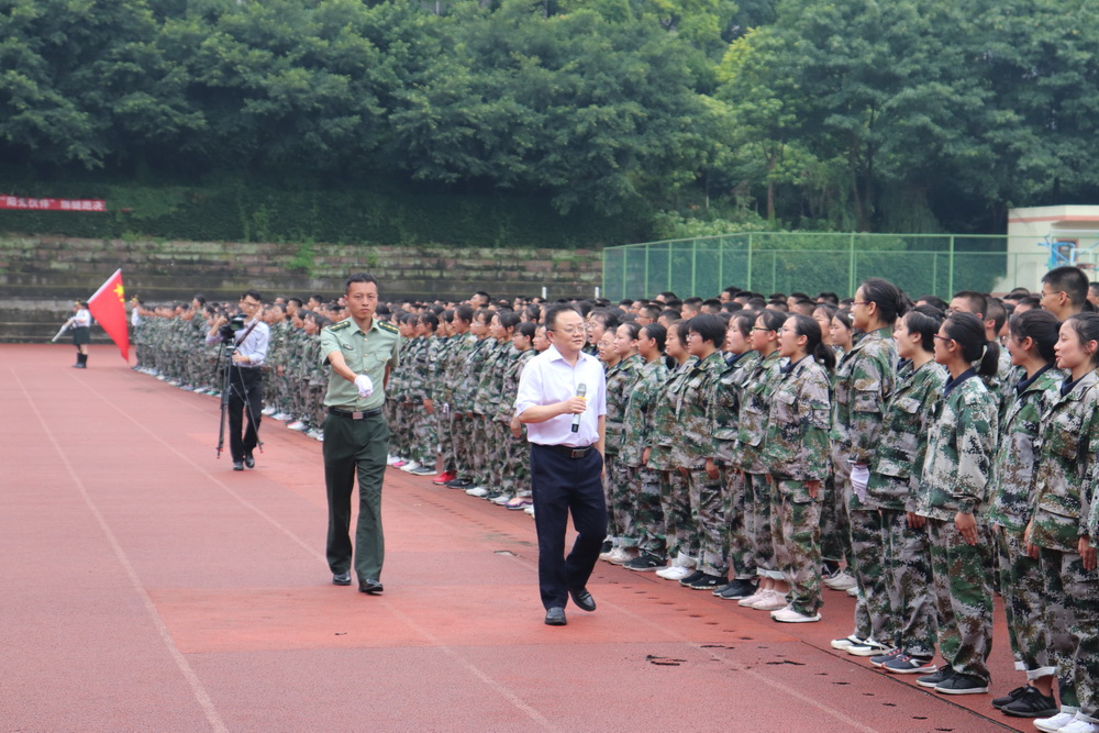 到了陌生的环境,学子们按照教官要求,立刻回寝室换好军训迷彩服,整队集合,参加开训典礼。重庆八中副校长付英、重庆八中树人中学校长曾奇、重庆八中学生处主任贺先进、重庆八中高2021级年级主任唐小兵、重庆八中树人中学高2021级年级主任徐铸、军训团团长高健,总教官陈蹇参加本次开训仪式。