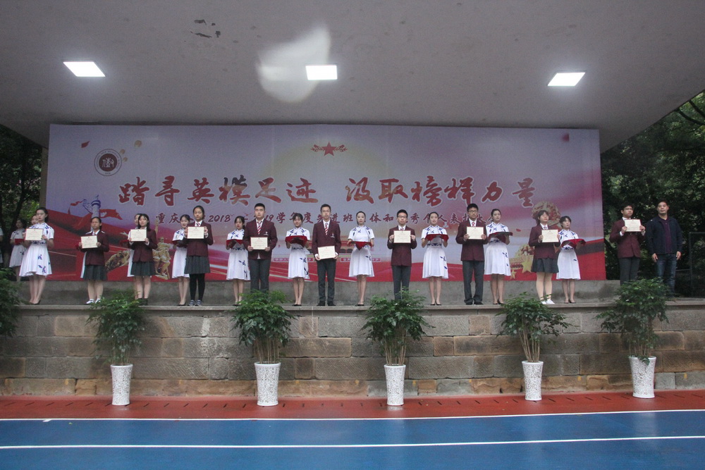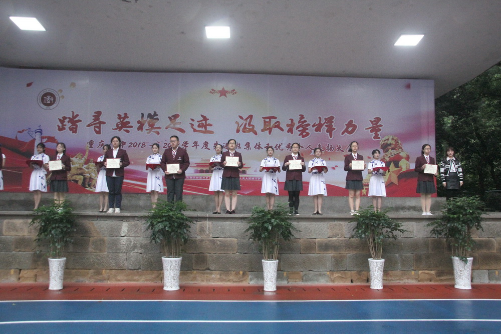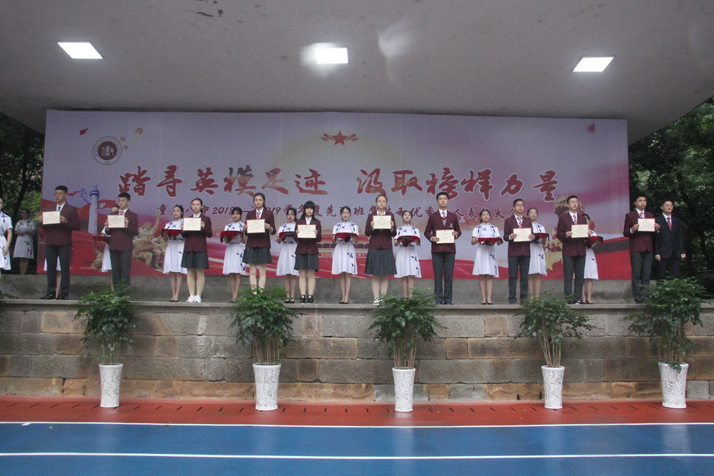 时值中华人民共和国成立70周年之际,为了表扬优秀,鼓励先进,我校于10月23日隆重举行2018-2019学年度“踏寻英模足迹,汲取榜样力量”先进班集体和优秀个人表扬大会,我校校长周迎春、党委书记卿知人、副校长杨华、副校长付英、副校长梅家烨以及各部门主任、年级组长、支部书记、学生家长代表出席大会并为获奖代表颁奖。