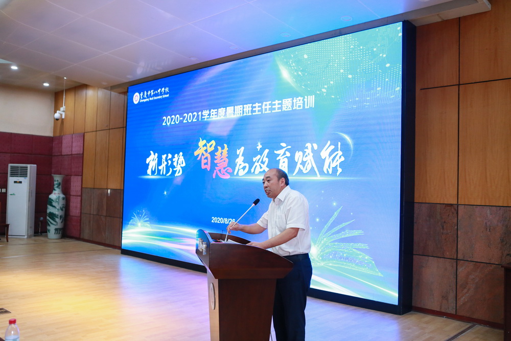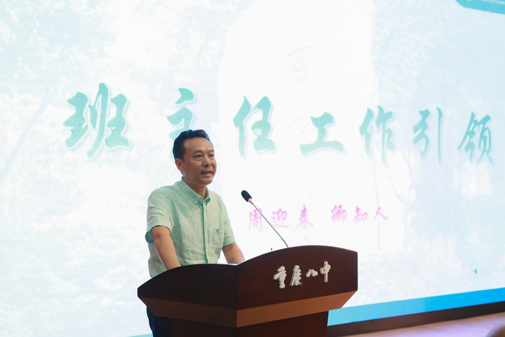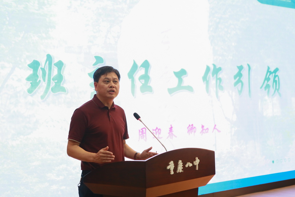 为提升班主任个人文化魅力,丰富班主任工作方法技巧,激发班主任在新学期的工作活力,8月26日我校各校区的班主任工作团队齐聚重庆八中沙坪坝校区报告厅,开展了为期一天的“新形势·智慧为教育赋能”主题培训会。培训会由学生处主任贺先进及渝北校区学生处主任陈超分别主持。重庆八中校长周迎春、党委书记卿知人、副校长付英、副校长兼数据谷中学校长周敦鸾、宏帆中学副校长刘剑平等领导参加主题培训会。