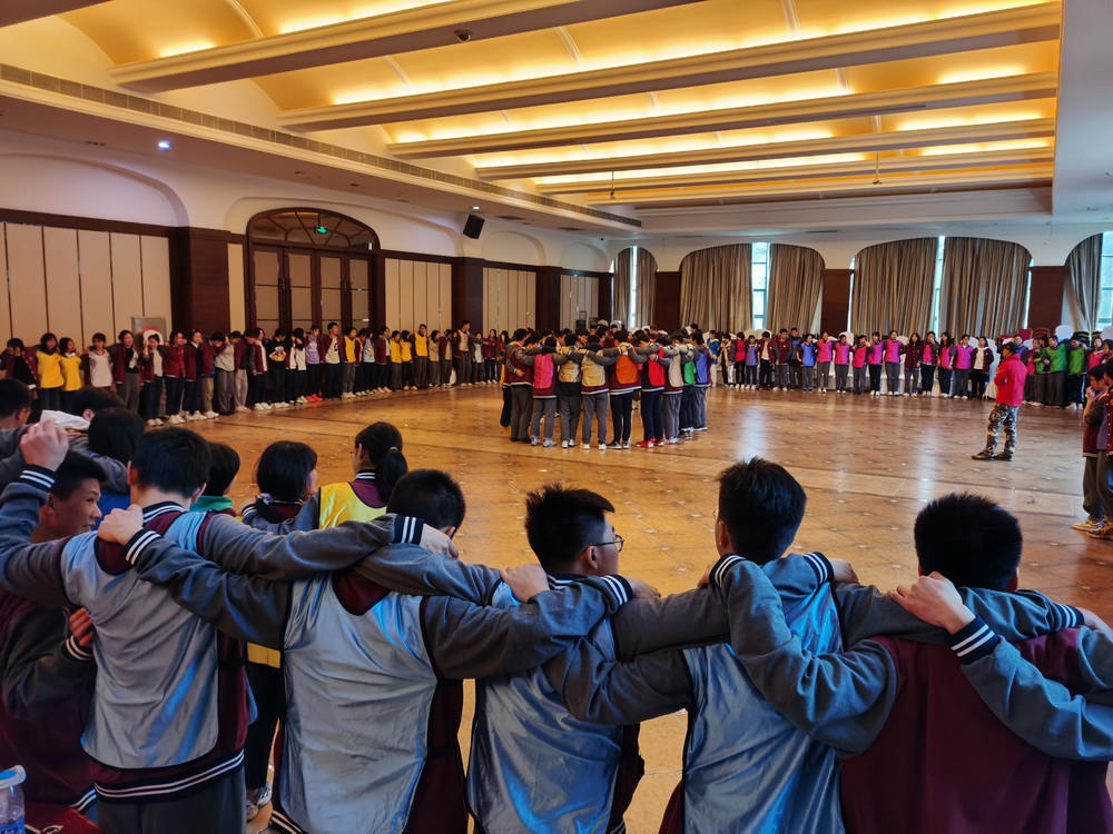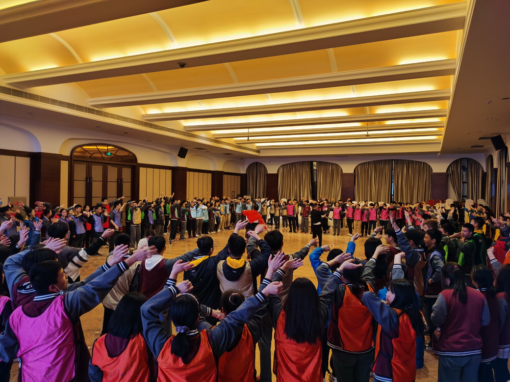 27日下午到达基地,在高效的分宿舍、放行李之后,同学们在教练们的指示中迅速到达大会议室集中。活动开始,教练团分别以简单的“抓手指”游戏、“折纸飞机比飞远”游戏、“跟节奏拍手”游戏让同学们快速融入团建气氛中。为加强不同团队内部的凝聚力,教练团将三个校区207位同学按校区和学生职务角色分为12个组,以小组间加分比赛的方式组织活动。