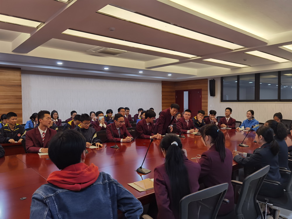 参观后,双方于行政楼六楼会议室进行交流活动。会议中,双方主席团分别介绍了各自校区的团学联成员及其分工,然后针对上半期以来的收获与不足进行了探讨研究,双方成员们踊跃发言,发表了各自的观点,互相都从中有所收获。