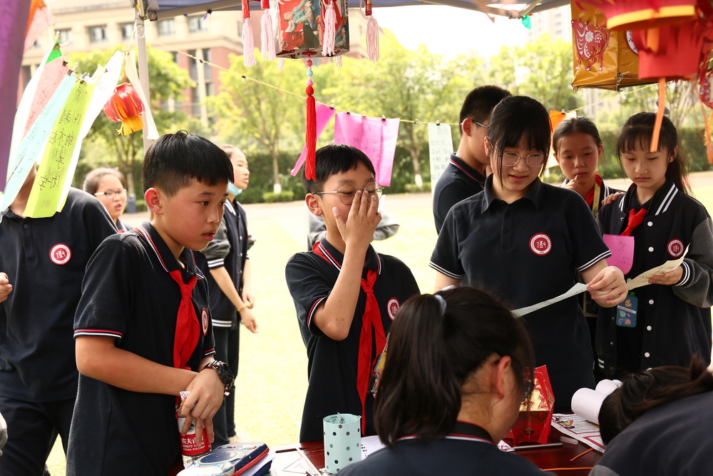 整场活动氛围活泼,少不了班主任老师和班级同学的积极参与,不少家长也自愿出力,为活动增光添彩。同学们在不同的店铺前或勇于挑战、或驻足品味、或东奔西走呼朋唤友,还有不少来自其他年级的同学也被活动吸引,参与其中。