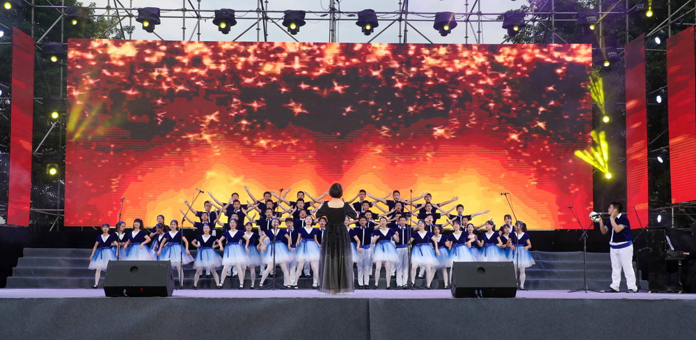 为深入学习贯彻习近平总书记在党史教育动员大会上的讲话精神,庆祝中国共产党成立100周年,6月3日晚,宏帆初2022级在操场举行了“青春心向党,唱响新时代”的合唱比赛。本次歌唱比赛向红色经典致敬,选取了系列经典红歌来合唱。