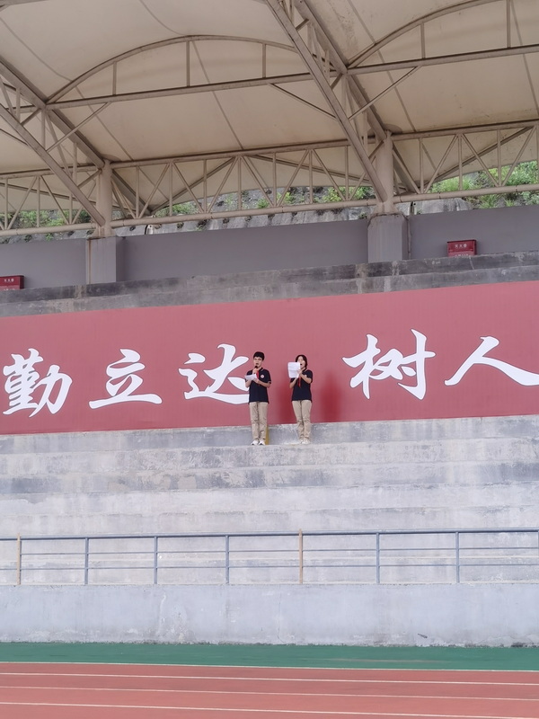 在初2023级6班主持人石翰东和黄千津的引导下,第一个环节是全校高唱国歌,然后唱响了校歌。