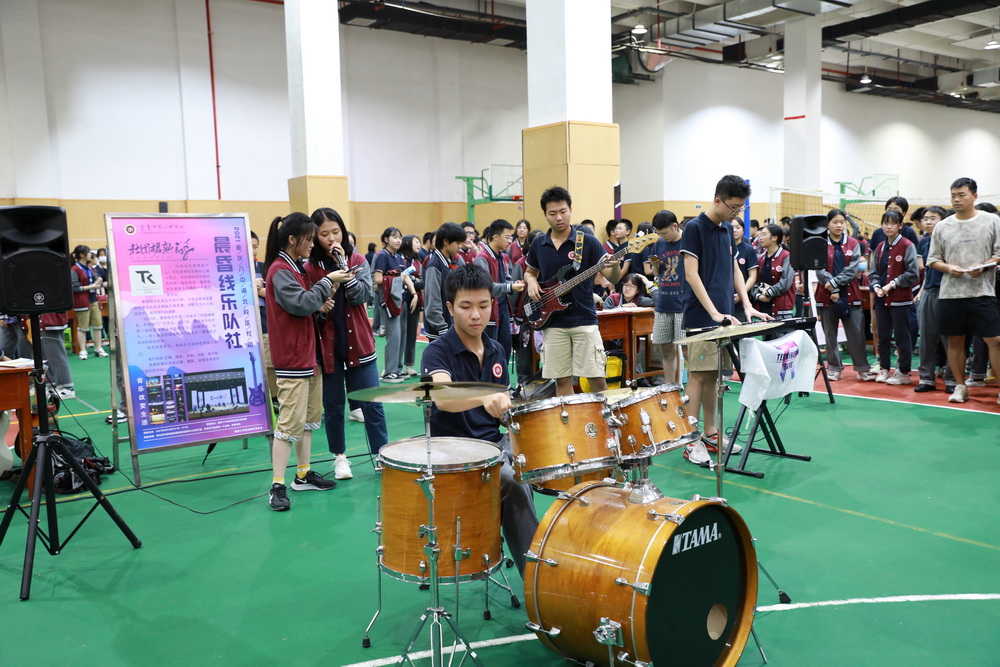 社团一直都是重庆八中的特色,渝北校区创立至今,已经发展到了40个各具特色的社团。本次招新活动,渝北校区为初一、高一年级的同学们准备了很多的明星社团,如获得重庆市优秀社团称号的重庆八中渝北广播电视台、韵染社、科学社,国旗仪仗队,还有每年会在学校开展校园推理周活动的推理社,每年都会开演唱会的晨昏线乐队,每年都会搞义卖的中华小当家厨艺社……