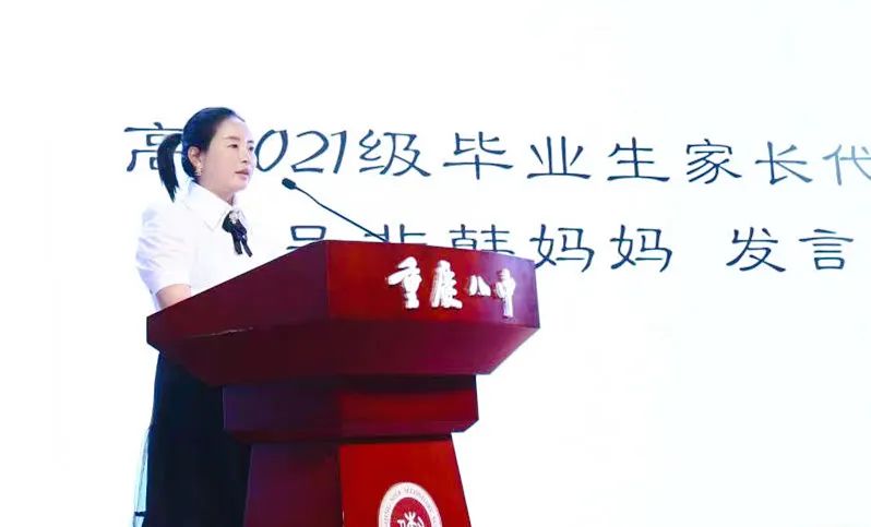 随后,吴非韩同学的妈妈作为家长代表,分享了家校合作教育的美好回忆与陪伴孩子成长的点点滴滴。