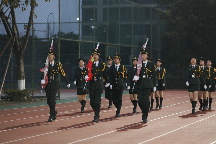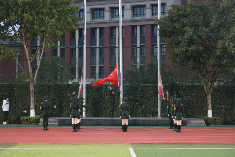 典礼由初2023级12班张天弋、李星莹、庞籴桐、刘思佑四名同学主持,首先进行了庄严肃穆的升国旗和校旗的仪式。