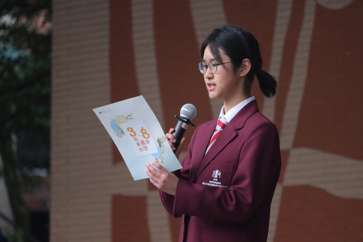 高2023级刘钊老师从历史深处的母系社会谈起,带领同学们看工业革命以来女性为争取妇女权利而作出的斗争,再谈到中国女足逆风翻盘、创造中国奇迹,让大家见证现代社会中女性撑起的半边天。最后他祝愿所有女性在新时代继续全能发展,自信幸福,闪亮自己,成就他人!