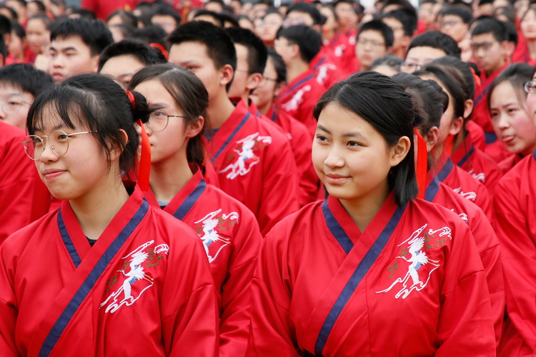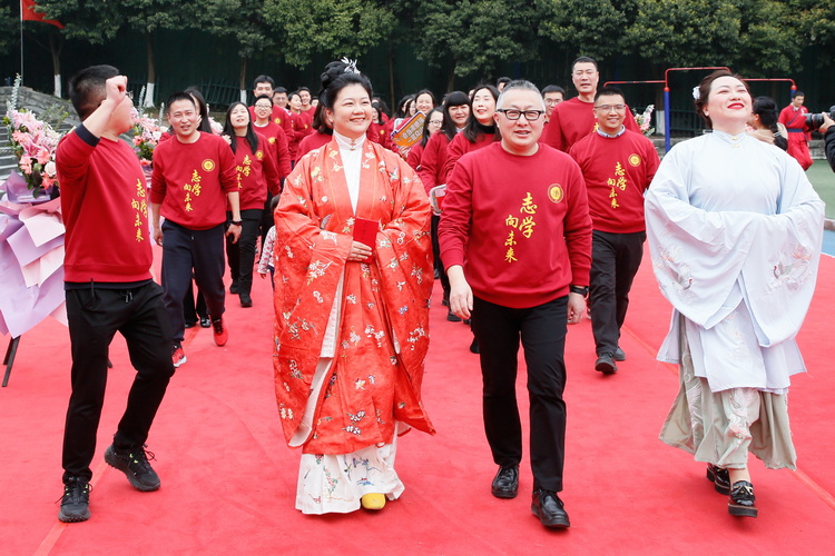 本次活动以“志学·向未来”为主题,分为三个篇章:有志于学,不忘初心;行志于学,砥砺奋进;圆志于学,奔向未来。20班朱丽桥同学的《相约•织梦》深情讲述过去近三年来在宏帆经历的在校生活。全体同学跟随教师艾颖的讲解,观看视频,一起行十五岁“志学”之礼。艾颖重点讲解着汉服原因、志学礼也就是及笄礼和束发礼的意义。随后,艾颖、赵宇红、盖彦华三位教师做示范,分别为八位同学行志学礼,各班同学行志学礼。