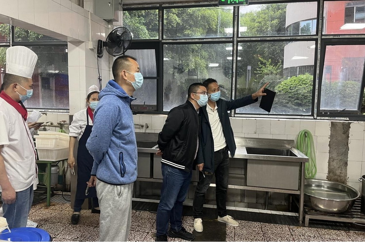4月14日,科学城中学综合办副主任徐铸、学生处副主任冉茂宇带队,对八中科学城中学食堂进行了安全工作的全面检查。食堂运营总监罗跃、食堂经理程杰、厨师长喻先锋和校医廖彤、综合办职员张文佳等相关工作人员参与了安全自查全过程。本次安全自查是对食堂的全方位安全自查,包含消防安全、操作规范、食品卫生等方面的检查。对消防设施、烟道、操作间、冻库、干货库房、工作人员操作规范以及小卖部做了重点检查,对有可能出现的安全隐患进行了严格仔细的查看。仔细查看食堂制度、工作记录、食品资质、生产日期、食品保质期等,存在的问题做了详细记录并要求按期完成整改。