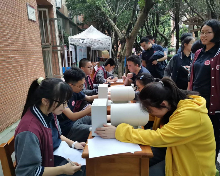 本次活动期间,校园内多处设置展板,向同学们解释常见的诸如人际关系、记忆、睡眠等有关心理影响的知识;还在周一至周五的午休时间设置答题区,鼓励同学们通过浏览展板获取知识,在答题区有奖竞猜,一展身手。更有心理社社团指导老师亲自上场指导心理社成员,借助西南大学心理学国家级实验教学示范中心的测试仪器为同学们带来各种新颖有趣的心理测试,吸引高三同学们前来踊跃测试自己的心理状况,或是交流自己的心理困惑。