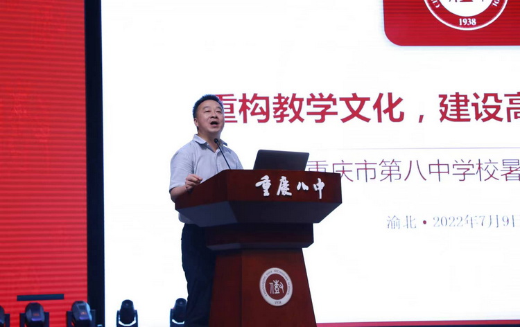 7月9日,重庆市第八中学校教育集团2022年暑期全员培训在重庆八中渝北校区大礼堂顺利举行。本次培训以“重构教学文化,建设高质量教育体系”为主题,由张泽勇副校长主持,重庆市第八中学教育集团全体教师以及新入职教师参加。各学校校长出席会议。