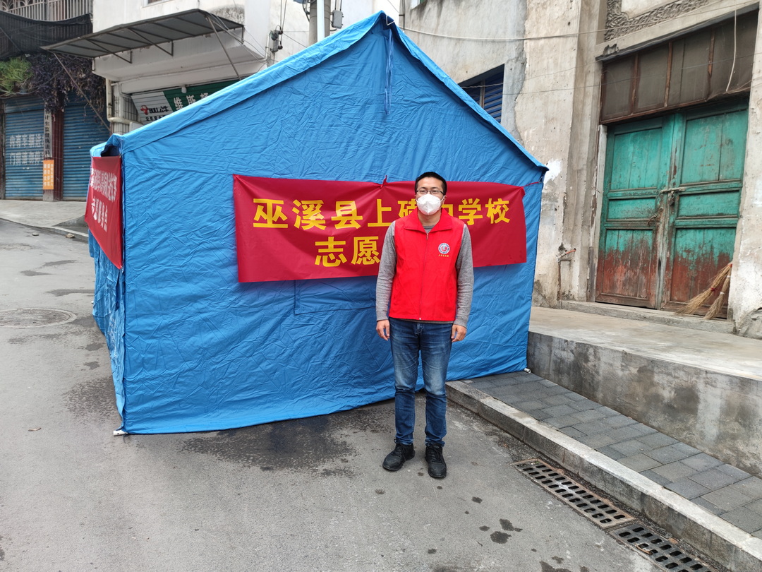 2022年11月初巫溪县新冠肺炎疫情突袭,部分地区疫情防控工作压力加重,2022年11月17日,上磺中学组织党员教师支援巫溪县宁河街道抗疫一线志愿者工作,来自从重庆八中的党员教师蔡野、赵辉、刘超作为志愿者投入一线工作,迅速集结前往目的地,在宁河街道相应卡点执勤,每个卡点设置一顶救灾帐篷,配备一些简单的生活物资。志愿者工作主要内容是参与卡点值守,帮助居民购买和发放生活物资,协助医护人员进行核酸检测,宣传疫情防控政策等工作。卡点值守采取二十四小时三班轮换,每一个班次要求连续工作八个小时,工作中志愿者需要克服长时间身着防护服工作,闷热、不透气、长时间不能上厕所成为常态,在疫情反复波动的情况下还要参与夜班的通宵值守、往往是坐在凳子上熬守一个夜晚,每日三餐只能吃盒饭,身体上心理上都有较大压力。但是重庆八中帮扶团队教师始终坚守一线岗位,积极主动承担相应工作,在参与疫情防控的同时同步做好线上教学工作,身着防护服在帐篷内给学生上网课的身影令人动容。此次疫情志愿服务工作历时半月之久,疫情之下有无数的瞬间和身影值得铭记,有无数的事例和感动值得永存,在此次抗疫一线的战场上,来自重庆八中帮扶团队党员老师们以他们大无畏,勇担任,乐奉献的身影为打赢疫情防控攻坚战注入了靓丽的八中红。
