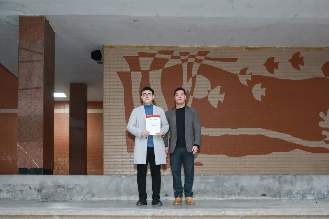 学生处副主任杜钦芝老师为高筱老师颁发朝会大讲堂荣誉讲师证书