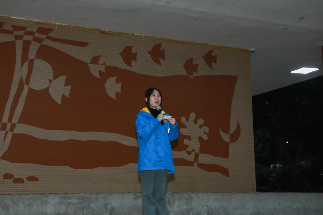 来自高二年级27班的李圣菲同学担任本周朝会的主持人。
