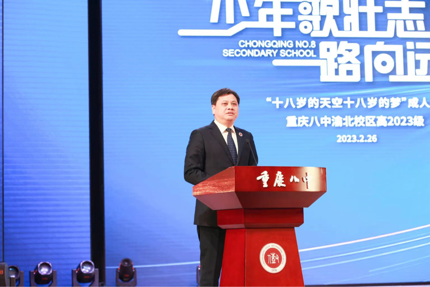 华龙网-新重庆客户端讯(郭晓彤 实习生 李若澜)18岁的你,希望成为怎样的人?会有怎样的困惑?又有怎样的担忧?2月26日下午,重庆第八中学校渝北校区举行“少年歌壮志 一路向远方”高2023级成人礼活动。