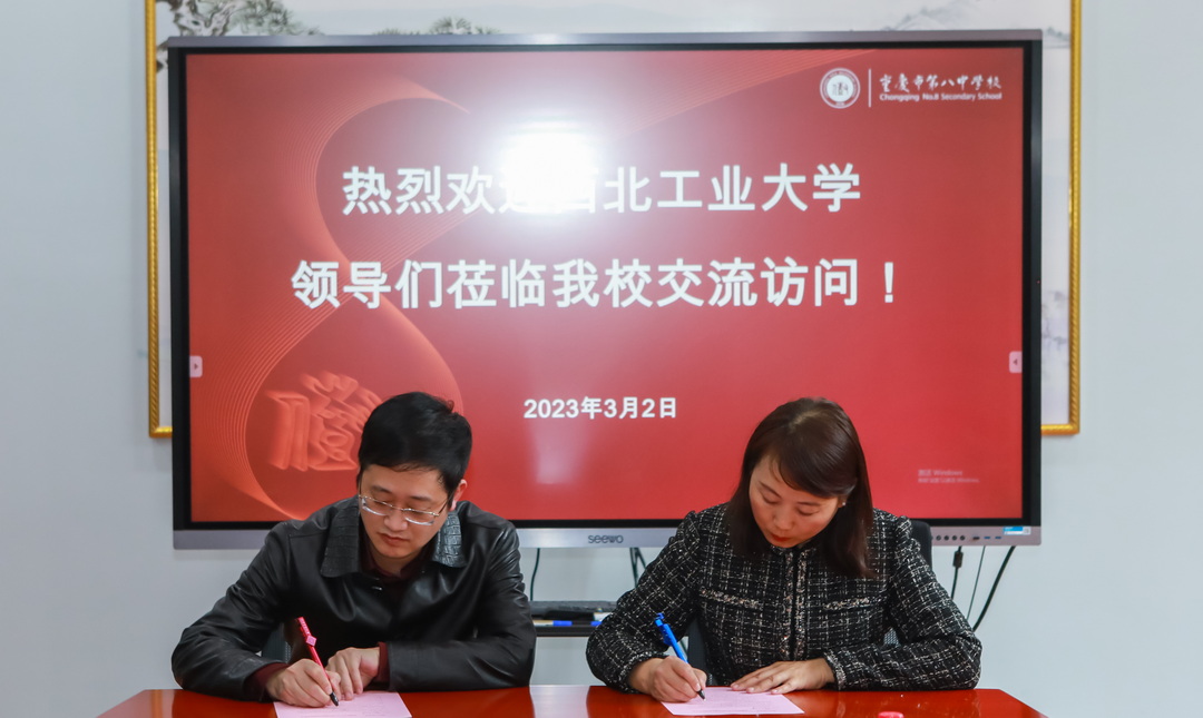 2023年3月2日下午,西北工业大学“优质生源基地”签约授牌仪式在我校树人楼第三会议室举行。西北工业大学数学与统计学院党委书记王莉、数学与统计学院副院长郭千桥、招生办公室副主任李佩、数学与统计学院院长助理刘晓刚、重庆招生组组长林伟、重庆招生组负责老师温金环一行莅临我校授牌并赠送歼-20战斗机模型。我校副校长梅家烨、学生成长咨询中心主任周明、教务处主任李明、沙坪坝校区高三年级组长范兴波参加本次签约仪式。