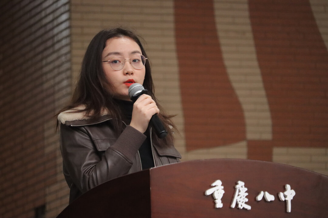 3月6日清晨,重庆八中沙坪坝校区高一、高二年级齐聚操场,举行第五周朝会。来自高一年级22班的兰淇棋同学担任本周朝会的主持人。