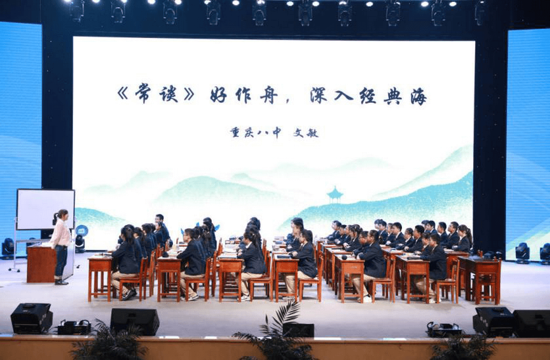重庆八中的文敏老师和南开中学的谭悦老师依次呈现了两堂精彩的课堂。文敏老师采用研读课型,选取《经典常谈》中《四书》这个章节来构建课堂。文老师匠心独运,条分缕析,带领学生梳理内容,给予学生阅读名著的方法,为学生打开了一扇阅读经典之门;她引领学生追本溯源,深入中华传统优秀文化内核,深切思考文化基因,强化了同学们的民族认同感。谭悦老师则通过促读导引课型,设置较高难度的挑战任务驱动学生,教给学生提取重点、梳理结构内容的方法,力图进行思维建模,进而让学生将问题升格为论题,培养了学生对于经典的探究精神。