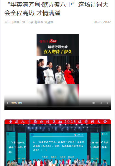 重庆日报——“华英满芳甸·歌诗覆八中”这场诗词大会全程高热才情满溢