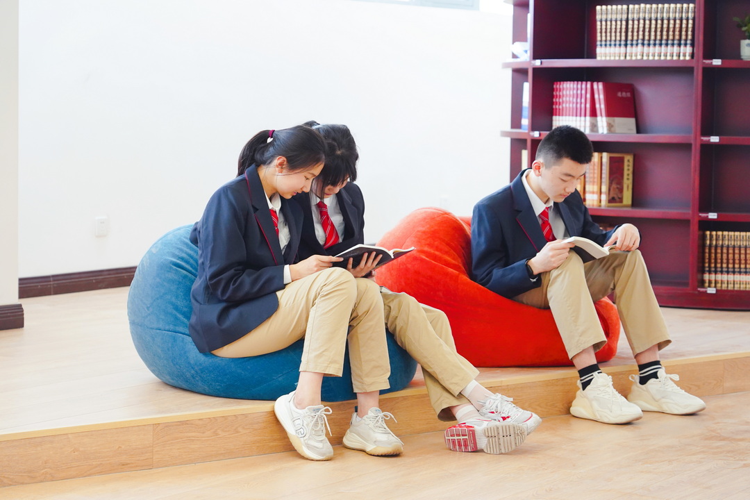 我校图书馆共五层,建筑面积一万平方米左右,首批藏书三万多册。二层专门设立休闲阅读区,放置沙袋沙发供学生使用;三层设有读书小屋,以更沉浸的空间,促进学生专注阅读。我校图书馆致力于为学生打造宽敞、舒适、现代化的阅读空间。