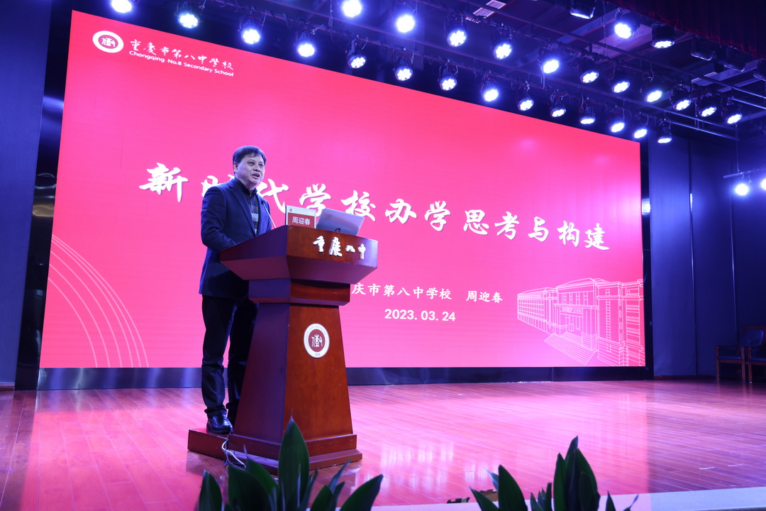 随后,周迎春校长作主题分享《新时代学校办学思考与构建》,从国家战略导向和改革新政下的教育课程改革,及中国式现代化背景下的教育使命与担当两个方面,分享了重庆八中对未来教育办学思考的探索实践和改革创新。