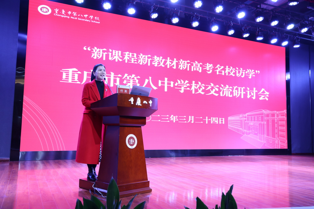 会议由重庆八中副校长付英主持。付英首先对全国各地教育同仁的到来表示了诚挚的欢迎,她讲到,重庆八中一直以来致力于开放合作办学,此次活动不仅是对“三新”工作的交流分享,更是与全国各地的专家、教育同仁们对于教育教学工作的相互探讨,相互促进,希望能借此机会拓展我校办学视野,也期待未来能和各地优秀学校有更多的合作机会。