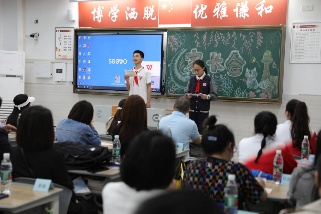 家长会是老师和家长沟通的桥梁,是孩子和家长情感促进的一种方式。这不仅让老师更好的了解了孩子在家的表现,也让家长了解孩子在校情况,对孩子也有一个更清晰的认知。家长也可以通过与教师的沟通,与老师们相互配合,达到真正的家校共育。家长会上,付英校长的精彩讲话,让我们更深刻地了解到为了孩子健康成长家校合作的重要性。随后,余欣妍同学带来了精彩发言,让同学们在聆听的过程中脑海里也浮现了在校度过的温馨场景,感知珍惜校园时光的重要性。紧接着罗宇主任分享了家与校一起努力,才可以让孩子们在阳光下更自由、更健康、更卓越地成长!