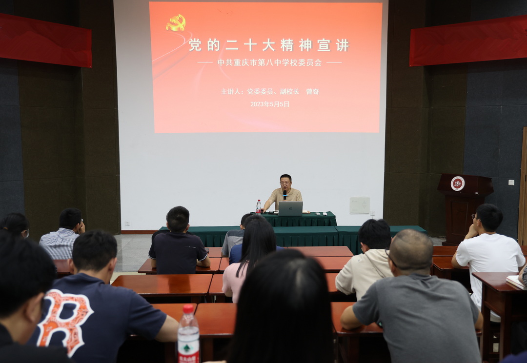 5月5日下午,重庆八中科学城中学全体党员在重庆八中党委委员、副校长兼重庆八中科学城中学校长曾奇同志的带领下深入学习了党的二十大精神。