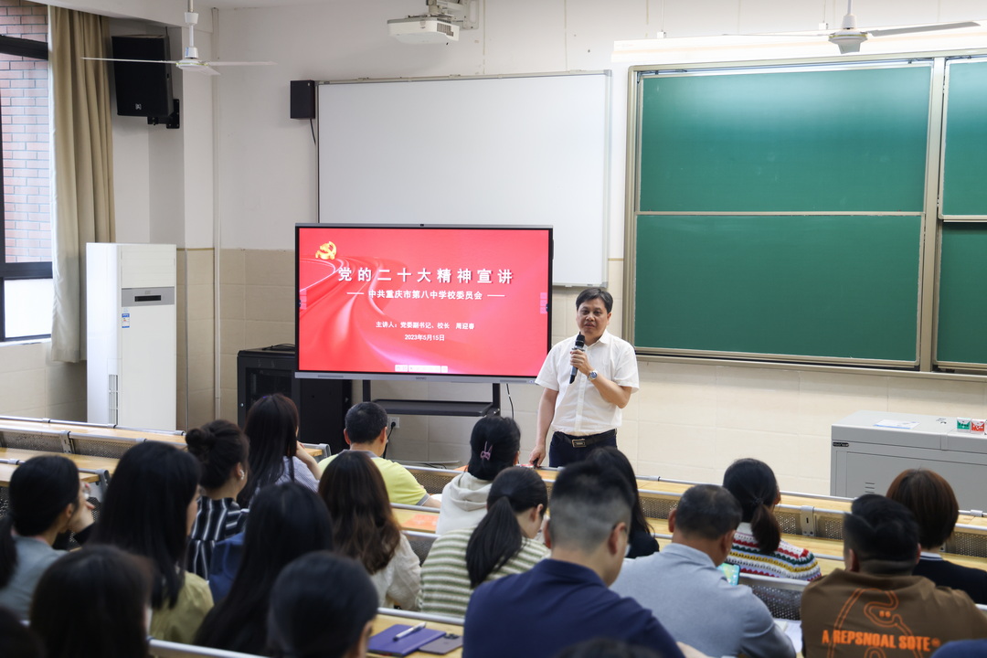 为了推动党的二十大精神深入校园、深入人心。2023年5月17日,党委副书记、校长周迎春同志为渝北校区初三支部、高一支部、行政支部的老师们进行了二十大精神宣讲专题报告。