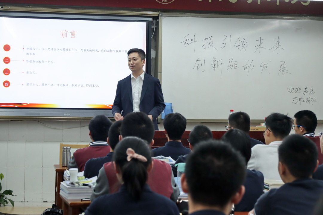 启动仪式结束后,参会人员合影留念,家长们分别走进各班教室,结合自己的工作经验与生活阅历,与学生们探讨“家国情怀”、“理想目标”、“立己达人”等话题。各班班会课无不活泼有趣,同学们兴趣浓厚、受益良多。