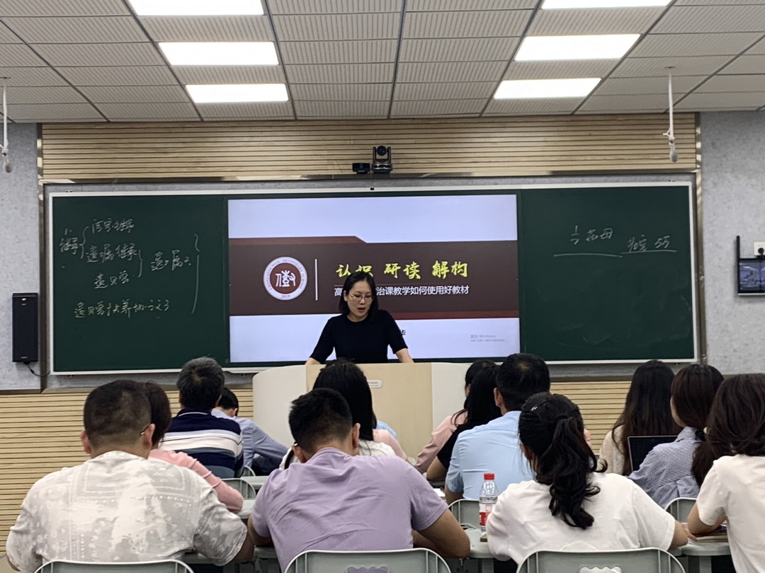 随后,饶老师带来了《认识,研读,解构》专题讲座。她认为,在贯彻落实立德树人根本任务、新教材全面推行、课堂知识理论逐渐加深背景下,如何创设多样化的课堂情景、满足学生的个性化需求、激发学生学习兴趣等方面,中学思政教师正面临着众多的挑战。但挑战也是机遇。饶老师认为,中学一线思政老师尤其要读懂教材并深度解读文本,充分备课、深耕课堂,加强自身理论累积,政治性要强、视野要广,师生、同事之间要多交流;而备好一堂课有深度的科,更需要立足大单元体系,解构知识,做到理论性、时代性、政治性与实践性的统一。最后,饶老师分享了自己在备课过程中如何将课本理论知识与学生实际生活紧密联系,以激发学生的学习兴趣。