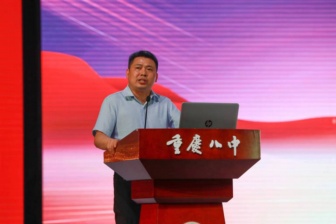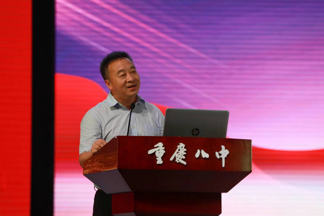 重庆八中副校长张泽勇老师为我们带来了精彩的发言。首先,他从真实的学习状态谈起,通过一组组数据让同学们正确认识高三。他提醒同学们高三的模样并不诗意,也绝非轻描淡写的讲述可以还原。真实的高三是日复一日辛勤的汗水,一张张厚厚堆叠成山的试卷,一场场牵动人心的考试,一次次不尽人意,一次次跌倒中的怀疑和站立。我们在一次次磨炼中可能逐渐变得焦虑,也可能变得坚强、从容。张泽勇老师告诉大家,每一个成功的人,背后都有极为辛勤的付出。每一个笑傲江湖的人,都有晨起晚练的风吹雨打的坚守。正是这些痛苦和坚守才能带来回首往事时谈笑一瞬间的愉快轻松。张泽勇老师给同学们提出几点建议:第一,作为八中学子要有高远的目标,有目标才有动力,有动力才有奋斗。第二,勤奋是高三应该拥有的样子。第三,要坚韧,在困境中能奋起,在严格要求中能坚持。最后,张泽勇老师告诉同学们只有用奋斗才能将那些让人生畏的数据转换成轻松愉悦。并祝福同学们来年时走出考场,感受真正的诗情画意。