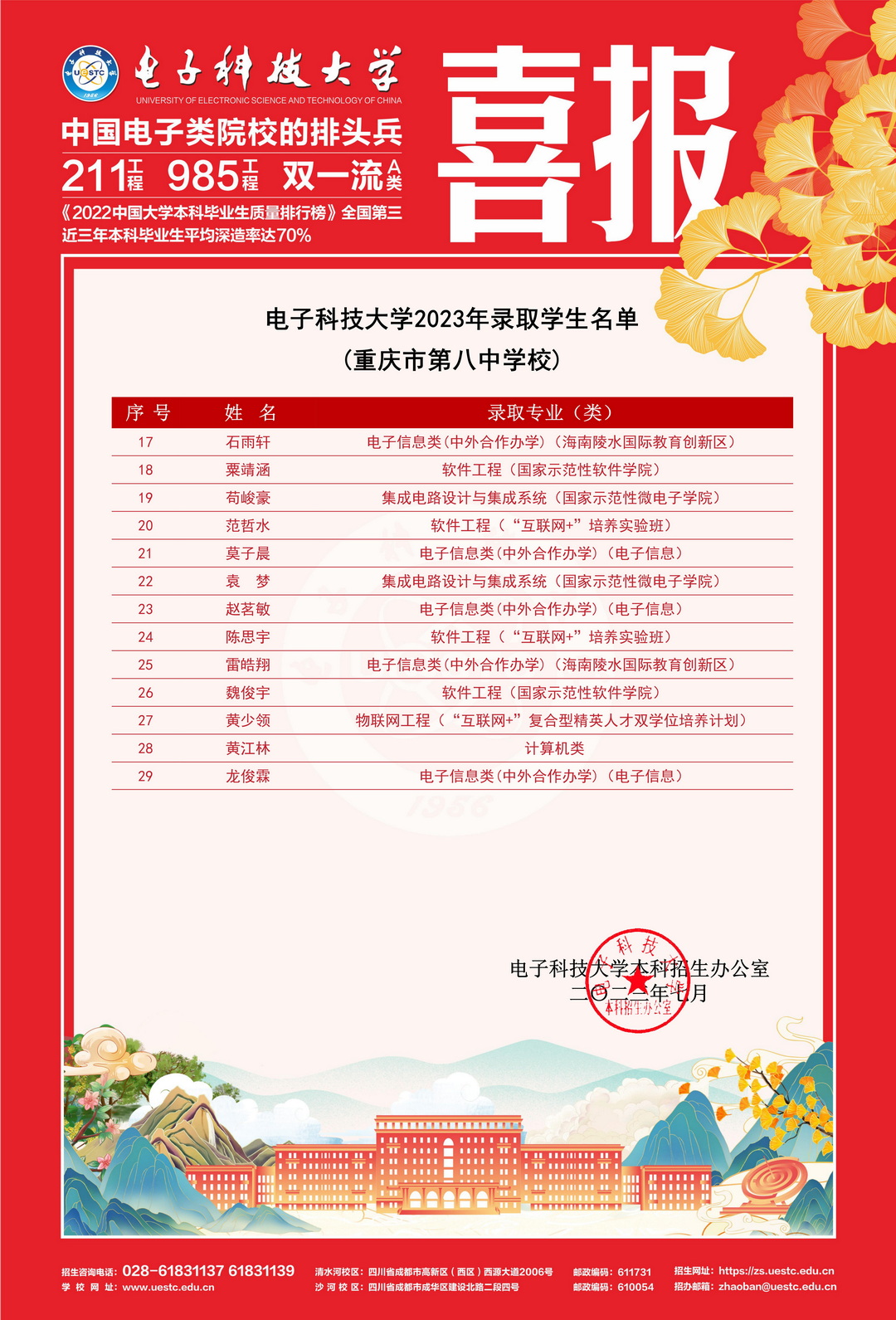电子科技大学喜报