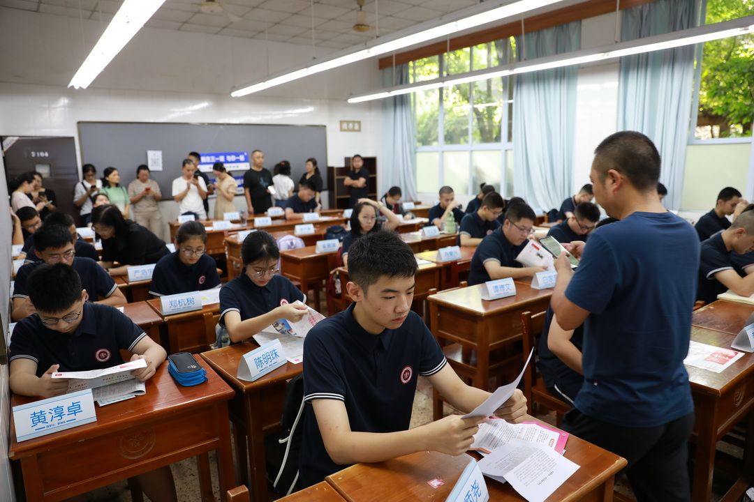 31号早上七点,高2026级班主任老师们就已在教室里布置座签,方便同学们快速找到自己的位置。高2025级团学联的志愿者们等候在校门口,提示新生扫码查询分班信息,并为新生指引教室与宿舍方向,更有后勤人员积极帮住读生运输行李至宿舍。