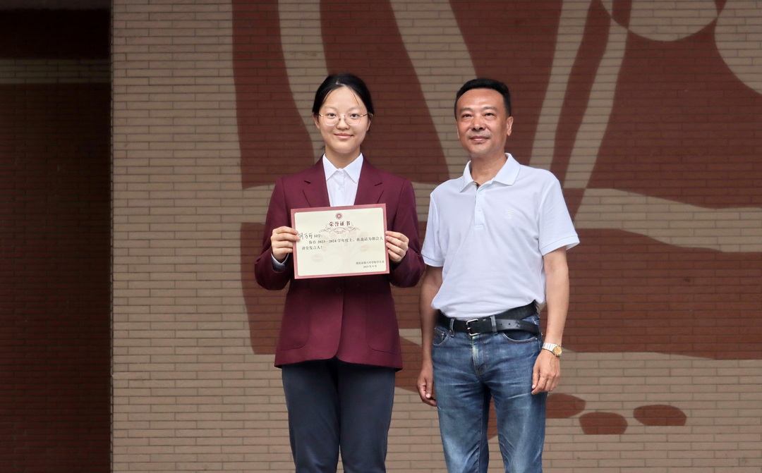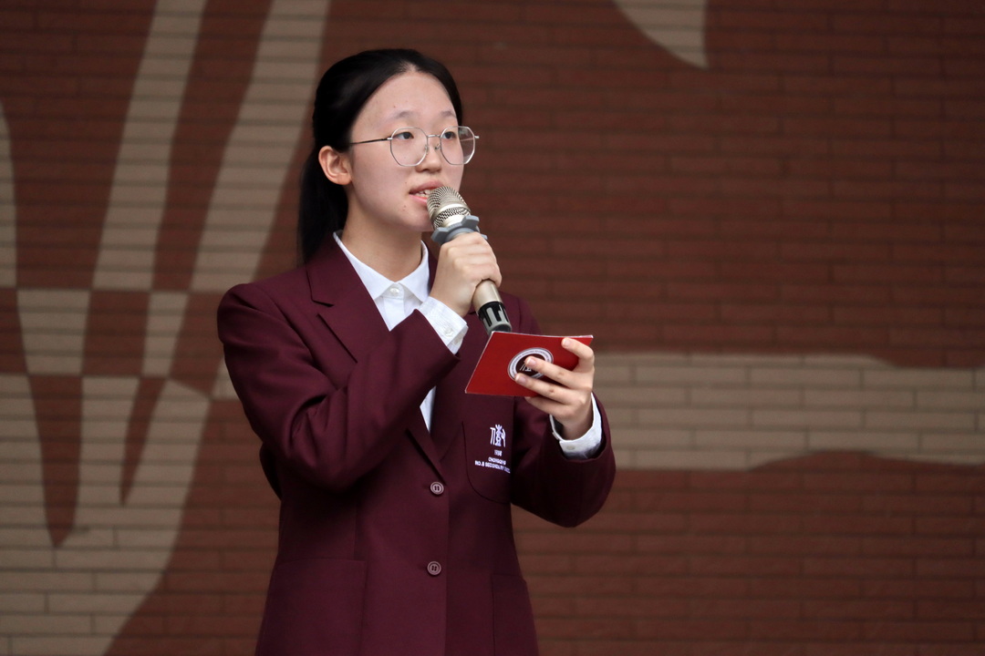 高2025级17班胡万可同学认为“规则”是为了让人更好地成为人,学校的规定并非冷冰冰的条条框框,每一条实际上都凝聚了老师们综合各方面因素后对学生的殷切期盼与关心爱护。尊重规则、克己守规,不仅护人、也是护己。愿同学们在明文规定与社会道德的双重“赋能”下笃行不怠。随后,党委书记卿知人老师为胡万可同学授予“朝会大讲堂发言人”证书。