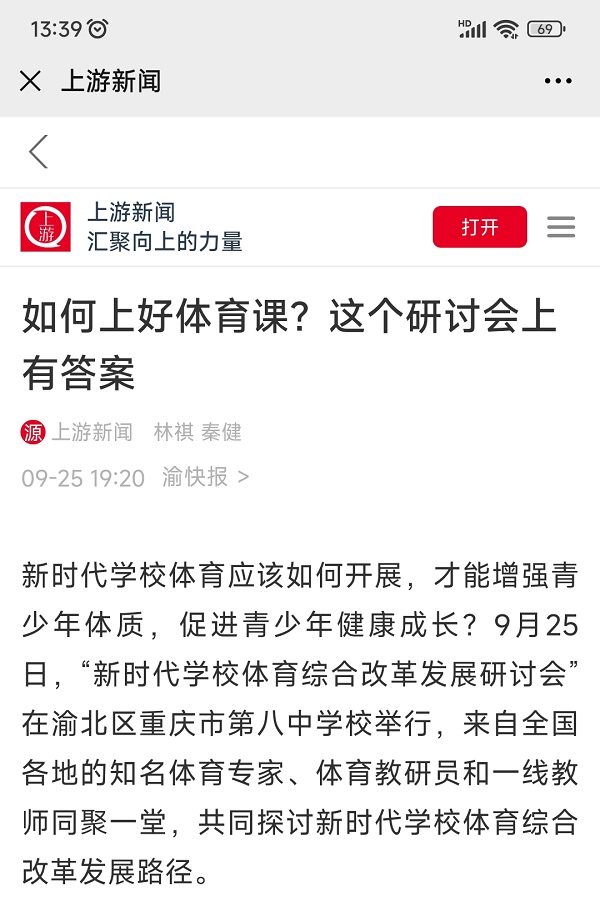 新时代学校体育应该如何开展,才能增强青少年体质,促进青少年健康成长?9月25日,“新时代学校体育综合改革发展研讨会”在渝北区重庆市第八中学校举行,来自全国各地的知名体育专家、体育教研员和一线教师同聚一堂,共同探讨新时代学校体育综合改革发展路径。