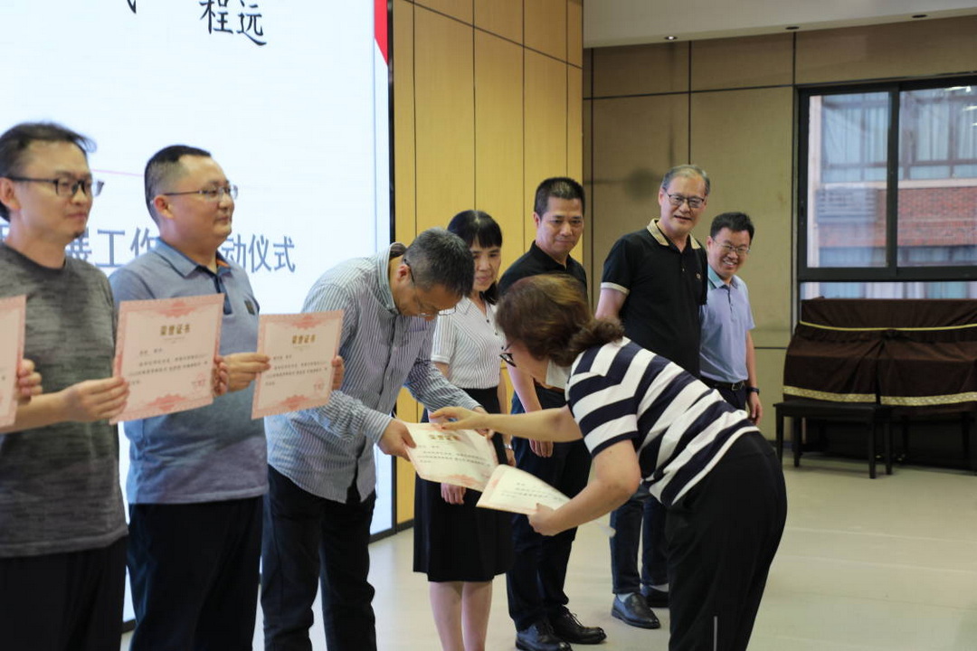 仪式首先由刘校长宣布师徒结对名单,随后郝校长等校领导为指导教师颁发聘书。指导教师们接过一纸聘书,也接过一份沉甸甸的职责。作为指导教师之一的胡校长在随后的讲话中指出了青年教师发展工作坊的必要性和重要性,认为工作坊将充分发挥资深教师的引领作用,促进青年教师快速成长;同时也在备课、听课、教研等各方面提出了明确要求,期待青年教师认真学习指导教师教育教学各个环节,共同推动学校教育教学在新高考、新教材、新课标的背景下进一步高质量发展。