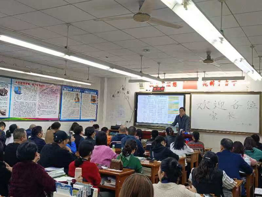 下午四点,集中家长会结束后,高三年级以班级为单位召开学生家长会。各班主任首先介绍了班级的基本情况,包括教师构成、学生情况、高三后期教学安排、班级活动、班级日常管理工作等。向家长们汇报了高三以来班级所做工作,并在家校共育方面对家长做出更高要求;随后,部分科任老师进班与家长见面,明确了各学科的学习现状与具体要求,指出了学生在学习上的不足之处并给出建议。