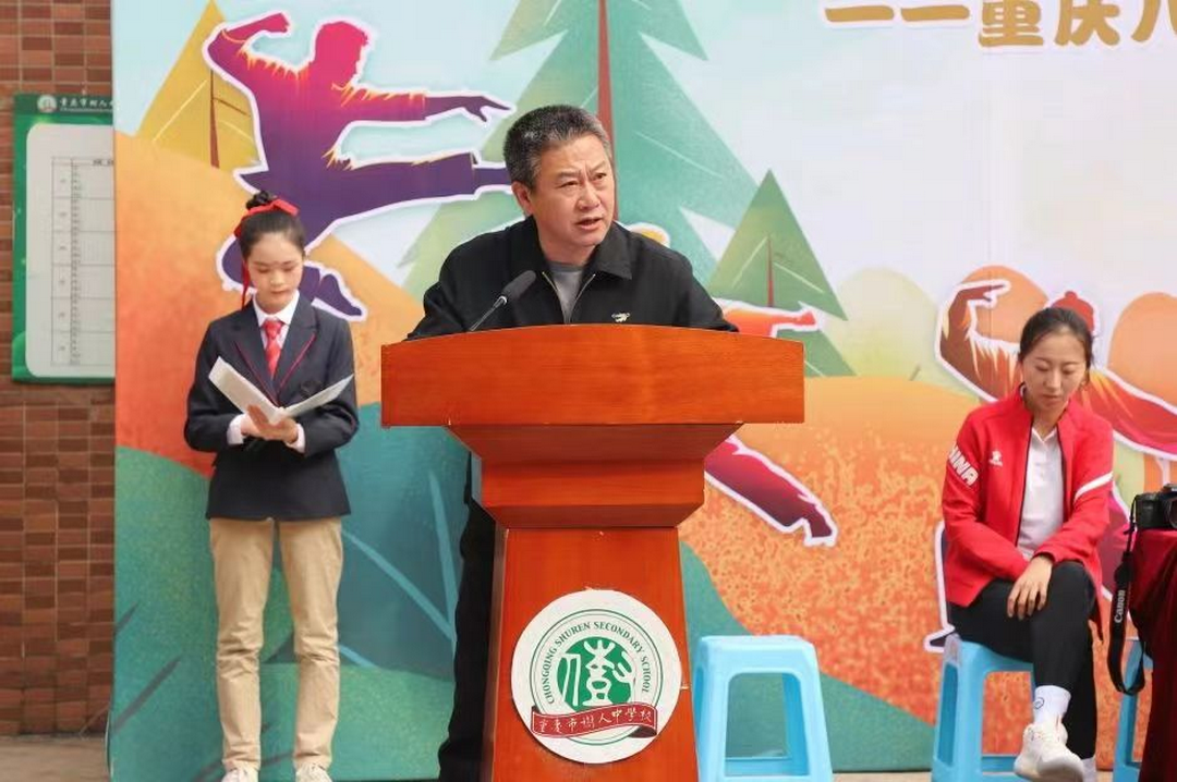 2023年10月29日下午,“八十五载文脉相传 盛世少年武德强国”重庆市树人中学初一年级武术操比赛暨亲子运动会在学校运动场举行,初一年级350余名学生及家长共同迎来了期待已久的体育盛宴。树人中学校长游迅、副校长杨振海、重庆八中体卫处主任助理任萍、树人中学学生处主任助理李伟、初三年级组长黄斯妍、初二年级组长张建飞、初一年级年级组长宋佳老师出席开幕式。
